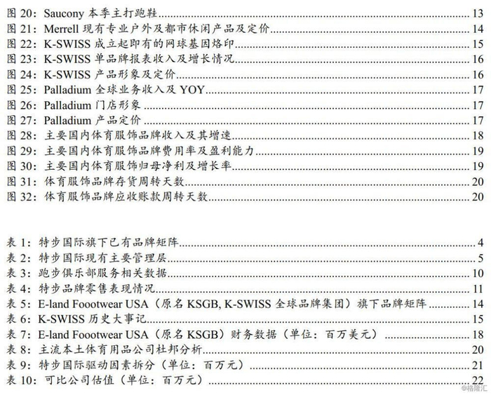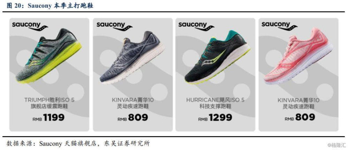 Saucony:全球四大慢跑鞋品牌之一,天猫旗舰店已营业,预计2020Q2开启线下实体店展店。Saucony是1898年创立的美国跑步鞋品牌,以其专业质量及领先技术跻身全球四大慢跑鞋品牌(Saucony、Asics、Brooks、New Balance)之一,2012年由Wolverine收购。本次合营公司成立后,2019年7月天猫旗舰店已开始试营业,主力产品价格目前集中在800-1200元,目标中高端市场,可满足竞速、缓震、支撑、越野等多种专业及业余跑者需求;除高端经典系列,目前研发团队亦已针对中国市场开发500-800元价格带鞋类产品并设计服装系列,该等产品预计将在2020Q2随首家直营实体店开设正式开启销售;从开店计划来看,Saucony预计将在2020年4-5月开始于一线城市展店,全年展店数量计划在30-40家之间。