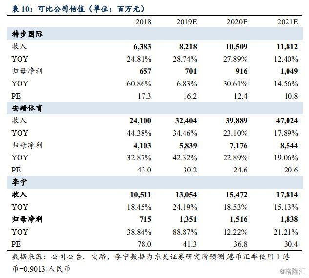 从成长性和估值来看,考虑并购KSGB为19年带来的影响1亿人民币亏损影响,预计19/20/21年归母净利同增7%/31%/15%至7.0/9.2/10.5亿元,对应PE仅16/12/11X,作为体育赛道的第三大龙头有所低估,考虑其增长稳定性以及未来业绩发展潜力,首次覆盖给予“增持”评级。