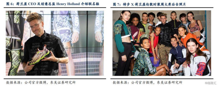 2019年联合荷兰屋带来时装周首秀,完成运动时尚进阶。除科技性之外,特步近年也提升对产品时尚度重视,2019年其与英国时装品牌荷兰屋开展跨界联名,以“跑出位”为主题策划伦敦时装周首秀,发布“城市跑者”系列产品,将荷兰屋的大胆色彩运用与剪裁特点和本品牌专业技术相结合,令人耳目一新。