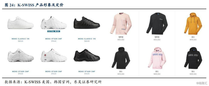 衣恋收购后K-SWISS亚洲业务未见起色、全球业务有所萎缩。2013年完成收购后衣恋集团针对K-SWISS管理层进行了大规模更换,也在亚洲业务上做出诸多努力,包括在韩国市场试水服装产品线、先后聘请姜素拉、朴宝剑、WANNA ONE、车银优等当红演员及偶像团体成员作为代言人等,K-SWISS整体发展仍显平淡,尤其一直未成功打入中国大陆市场。截止2018年,该品牌全球收入规模/EBITDA分别达到1.09亿/252万美元,销售额中北美/亚洲/欧洲分别占60%/25%/15%,大部分仍通过批发模式销售;定价方面,目前海外款式鞋品500-700元为主力价位段,服装中短外套价格在600-800元,卫衣主力价位段在500-600元,运动裤价格则在400-500元之间。