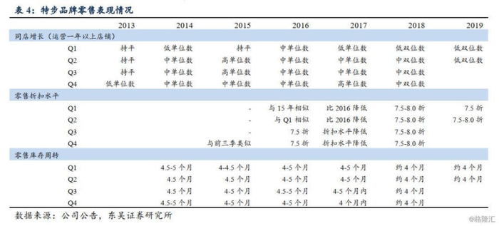 3)2015-2017年:开启三年改革,进行品牌重新定位、产品研发加码、渠道升级及零售精细化管理,尤其渠道管理扁平化以及433发货制度改革为公司终端店效、折扣率、库存管理效率带来质的飞跃;
