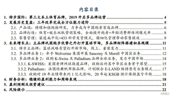 3)新品牌培育的风险:未来18-24个月将对K-SWISS进行全新定位后启动中国市场销售,由于K-SWISS此前缺少服装品类产品、同时国内认知度需要进一步培育,令需兼顾原有K-SWISS及Palladium全球业务,对公司运营能力提出更高要求。