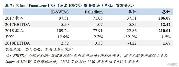 3)新品牌培育的风险:未来18-24个月将对K-SWISS进行全新定位后启动中国市场销售,由于K-SWISS此前缺少服装品类产品、同时国内认知度需要进一步培育,令需兼顾原有K-SWISS及Palladium全球业务,对公司运营能力提出更高要求。