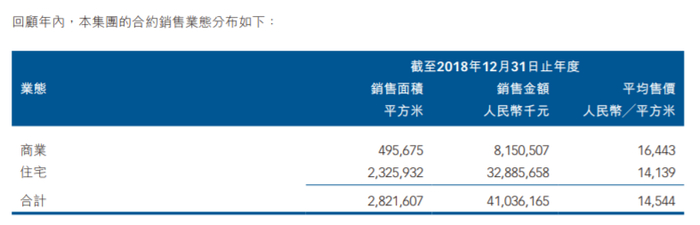 2018年,宝龙地产合约销售额增长96.5%,达到410亿,创历史新高。其中商业地产合约销售额仅有81.5亿,占比仅两成。