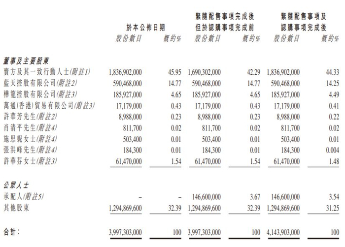 配售及认购交易完成后,许健康、许华芳、许华芬和施思妮的持股分别变为44.33%、14.47%、6.38%和0.01%,许氏家族总持股下降到65.19%。