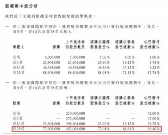 如果没有产生回拨,那即是代表绝大多数流通股落入少数人手中,那么炒作也就更加容易。以近期星宇控股(2346.HK)为例,公开发售仅录得10.38倍的超额认购,导致背后筹码非常集中,首25名股东已持有公司逾90%股权,股权集中自然对股价有帮助,加上当时的稀土概念,股价一度涨近90%。