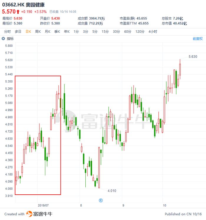 比如在今年3月份,物管股投资情绪火热,整个物管板块在这个月上涨了12%。这个时候,同属物管概念的奥园健康(3662.HK)在港交所挂牌上市,上市当天即上涨21%,一周内上涨了40%,充分享受到了概念的红利。