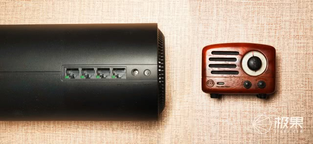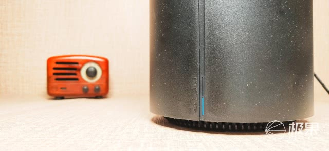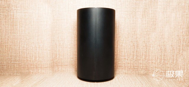 与小爱音箱Pro的相似还体现在用料和做工:由于其内部上半空间都空置,用指甲盖敲击外壳上去反馈出的声响比小爱音箱Pro还要空洞轻响;整个机身都使用了ABS材料,这样造成的触感差些、塑料感强,如果是经磨砂打磨或抛光后的黑色机身会更吸引人,但想来这样的做工也基本不会出现在这个价位的路由器产品上。