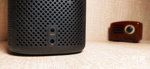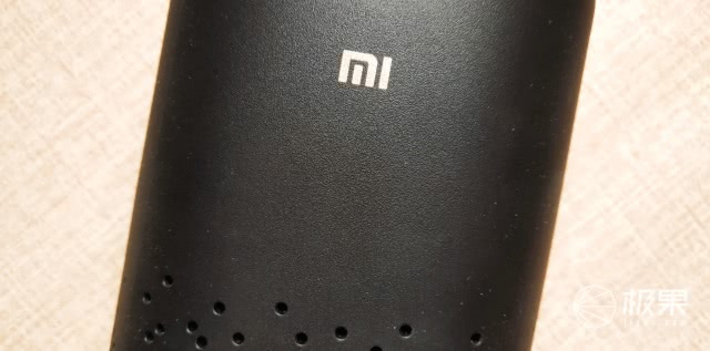 音箱整个机身都使用了PC材料,这样造成的触感差些、塑料感强,用指甲盖敲击上去会反馈处清脆的声响,如果是经磨砂打磨后的黑色机身会更吸引人;音箱四个面的下部分都布满了散音孔,金色的“MI”Logo铭于正面上方,其余空白设计让人甚感米家风格犹在。