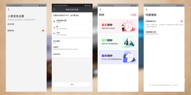 小爱同学的音色有活泼可爱和温柔知性两种模式,不知后续有没有温柔大叔以满足女性用户的期待,方言版仍未上线;地址与出行信息的设置能够让小爱同学以智慧AI更好地为用户提供信息帮助;以后用小爱音箱Pro设置多种形式的闹钟再也不会被手机生硬的声音吵醒了;最新上线的地震播报功能予以川渝地区的用户福音,及时性有待检测。