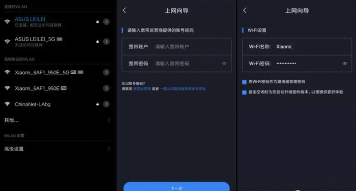 在开机之后,路由器会发射2.4G与5G两个频段的Wi-Fi信号,这个时候还是没有密码的状态,笔者根据提示用手机连接了其中的2.4G频段,然后就跳转到了路由器设置界面,根据上面的提示,设置完自己的路由器名字和密码,还不到一分种就完成了,这样简单便捷的设置确实是让笔者感到惊喜。