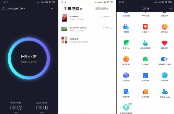 除此之外,小米路由器AC2100还拥有独立的小米Wi-Fi应用程序,整体来看,它囊括了当下市面上路由器所支持的全部功能,大概可以分为三类:第一类是安全防护;第二类是便捷访问功能,以访客模式及防蹭网为主;第三类是游戏加速功能。
