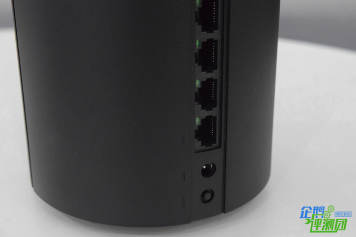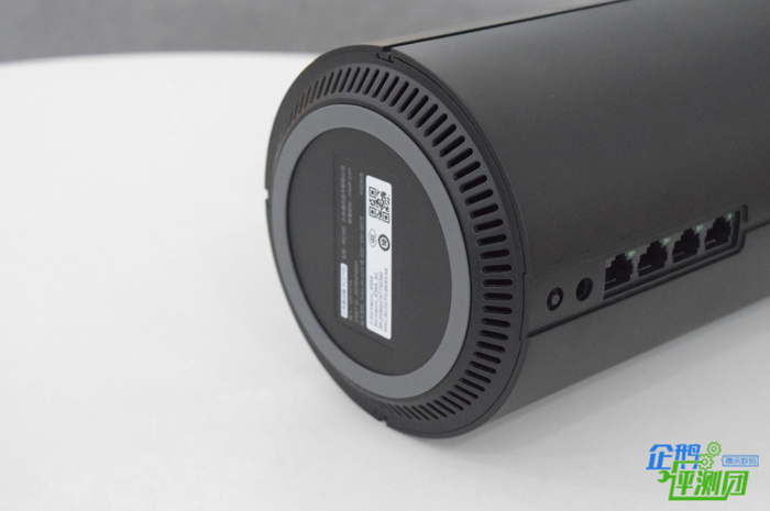 整个设备主体的部分除了前后的指示灯和端口,还设计了中空的机身和四个竖槽,增加美感的同时还提供了着力点,方便用手拿路由器,且这样的设计还可以降温,是处理器工作时温度不会很高。独特的设计还使它的噪音分贝也很小,笔者把耳朵贴在设备上面,才能听到声音,在降噪方面做的还是很好的。