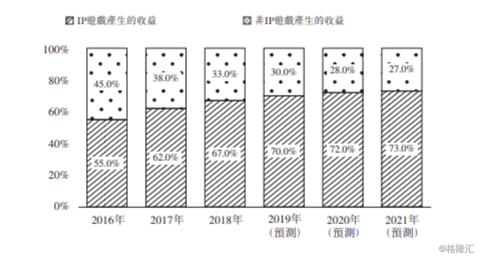 其中,以所产生的收益计,于2018年,基于IP开发的游戏分别占Apple App Store 50大免费及畅销游戏的71.0%及61.0%。而IP手游产生收益人民币972亿元,预期将于2021年增至人民币1,679亿元,复合年增长率为20.0%。