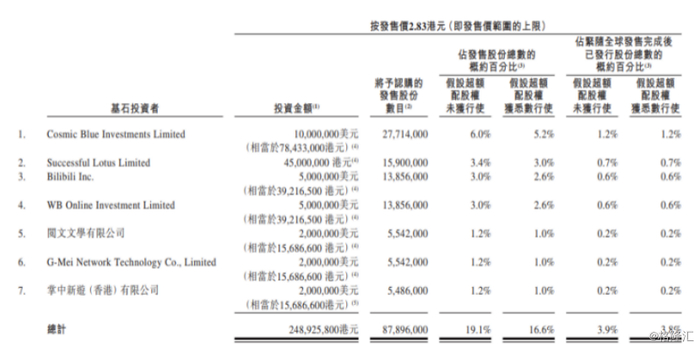 值得注意得是,中手游目前获七位基石投资者认购,包括社交娱乐巨头快手、Bilibili、微博、阅文集团三七互娱掌趣科技,以及恒地地产主席李家杰共投资约2.5亿港元。