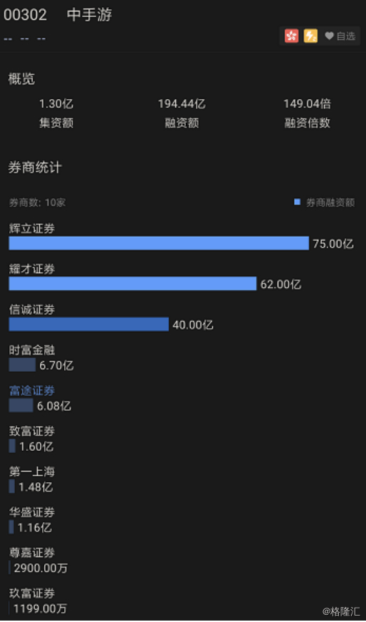 根据富途牛牛数据显示,截至10月22日,综合十家券商数据,中手游认购融资资金就已超过1194.4亿港元,相当于公开发售1.3亿元的149倍。