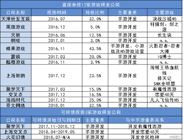 除了直接并购,中手游还通过基金及参投优质IP版权方及游戏开发商。目前,中手游已经直接投资12家手游开发公司,同时与参股公司形成紧密合作共同开发游戏以及IP运营业务的发展。