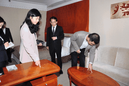 集团领导实地察看问题区域和客房