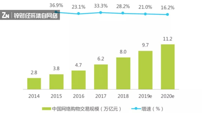 2014-2020年中国网络购物市场规模