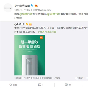 昨晚,小米空调官微透露,小米空调新品至少有四款,而且立式、挂式都有。