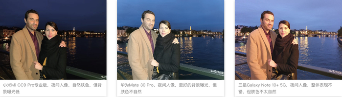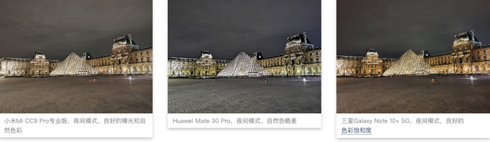 夜景模式 小米CC9 Pro 56分 华为Mate 30 Pro 61分