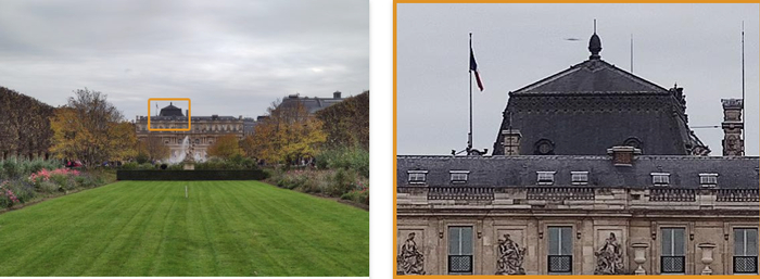 然而,在放大的图像中人工智能的痕迹是明显可见的,特别是在中程照片中可以看到,在长程照片中更明显。在这个例子中,你可以看到很好的整体细节保存和轻微人工智能痕迹。