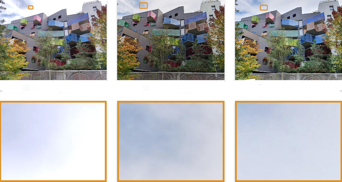 噪点也得到了很好的控制,使得这款手机也成为了这一类别中得分最高的手机之一。然而,在某些情况下,如在蓝色的天空中,可以看到少量的亮度噪点。也就是说,CC9 Pro在控制噪音方面做得非常出色,从1 lux的最低光照测试一直到1000 lux的室外场景都很优秀。