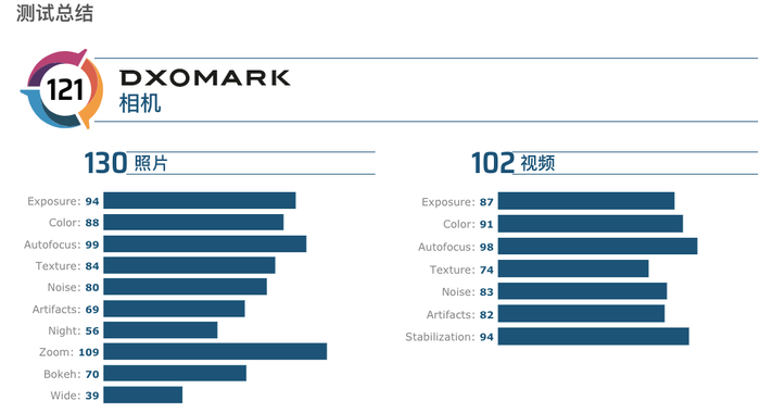 由于配备了双远摄镜头的相机,小米CC9 Pro在变焦测试中表现得格外出色:它拥有2倍和4倍的光学变焦功能,使其变焦分值达到了创纪录的109分。多摄像头设置也有助于小米手机在景深方面也做的很好。