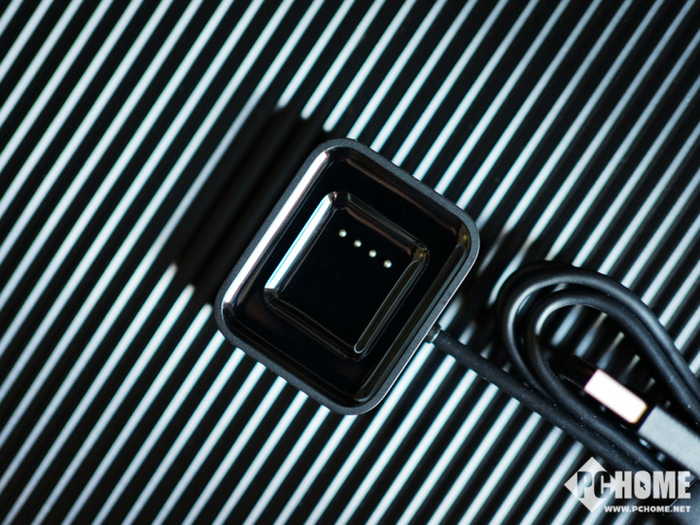 四枚金属触点则是与充电器相接触使用,或许你会担心不经意间没有对证金属触点的位置怎么办,小米则提供了一个非常好的解决办法:充电器和手表背部互为正负极,如果触点接触不对位的话也是完全无法放置的。