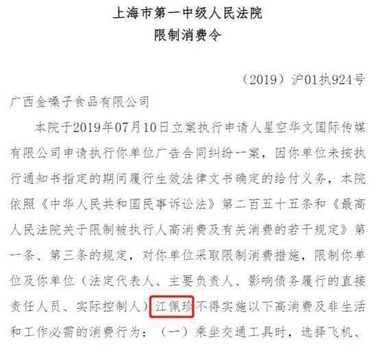 比如,因为拖欠星空传媒5194.98万元广告费,被认定为“老赖”,进入限制消费名单。