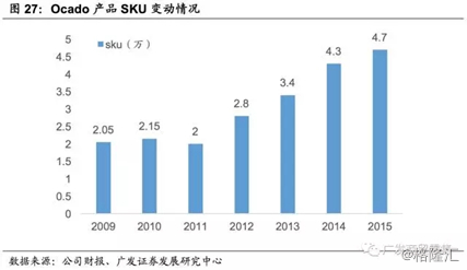 2015年,Ocado网站售卖的商品SKU达到47000个,涵盖了各类大众品牌食品,非食品类产品以及国内外一些特色品牌商品,成为英国销售品类最多的零售商。