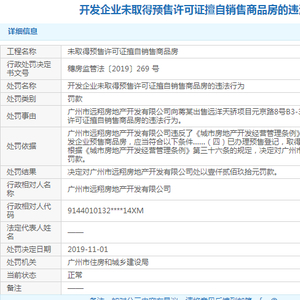 远洋集团子公司未得许可证擅自卖房 遭广州住建处罚