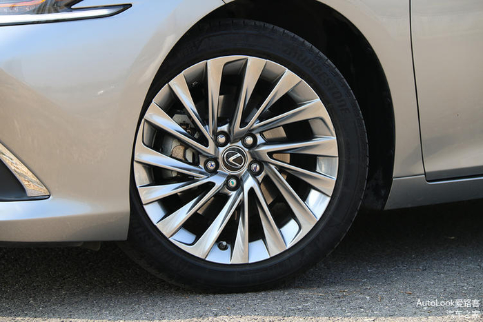 ES车身侧面线条优雅流畅。18寸的轮毂采用多辐造型,配合泛有金属色泽的喷漆十分具有质感。轮胎采用尺寸为235/45 R18的普利司通泰然者系列轮胎,这款轮胎定位较为高端,在耐磨性和静音性方面做出了不错的平衡,同时适中的扁平比能够让美观与实用兼得。