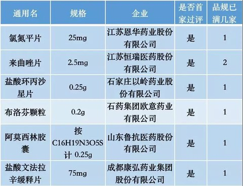 除了6个品规首家过一致性评价外,本周也有两个品规过评企业集满三家。