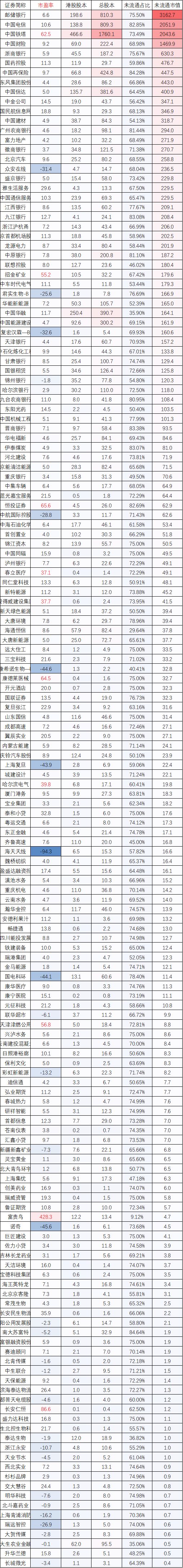 其中,南大苏富特的非流通股本占比最高,为84.6%,目前总市值只有2.3亿港元,中国再保险、九江银行、晋商银行、伊泰煤炭、中国电信、恒投证券、广州农商行、中原银行、九台农商银行等的非流通占比也均超过了80%。