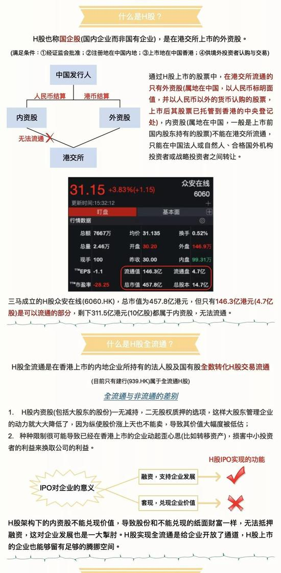 1)对企业来讲。A:提高公司治理水平、改善H股结构。天风证券指出,全流通改革使得内资股股东可以无需通过VIE架构就直接在香港市场减持,将会吸引更多的内陆公司通过H股的模式赴港上市,对改善H股的结构带来帮助。川财证券表示,“全流通”扩大H股融资渠道,完善企业治理、提升估值水平。