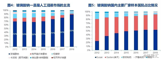 玻璃酸钠滴眼剂为我国市场最主要品种,但仅可做到缓解症状,海外大部分干眼症药物我国均未引进。2018年我国眼科用药样本医院市场规模23.1亿,增速12.48%,其中除了雷珠单抗和康柏西普两个治疗湿性黄斑病变的药物之外,最大的品类就是治疗干眼症的玻璃酸钠滴眼液,占整个眼科市场用药的11%。2018年样本医院销售规模2.5亿,预计放大后品种终端规模约10亿左右。