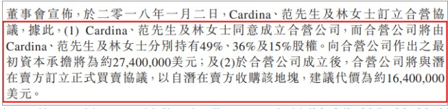 这可以从卡森在柬埔寨的水上乐园项目中一览无余。2018年1月,卡森宣布其首个柬埔寨项目,设立合营公司在金边开发一个水上乐园(“水上乐园合营公司“)。卡森宣称这家合营公司的股东是Cardina(卡森的一个子公司),范德华先生和林秋好勋爵(“林女士”)。反常的是,卡森在仅拥有合营公司49%权益的情况下同意贡献84%的资金。