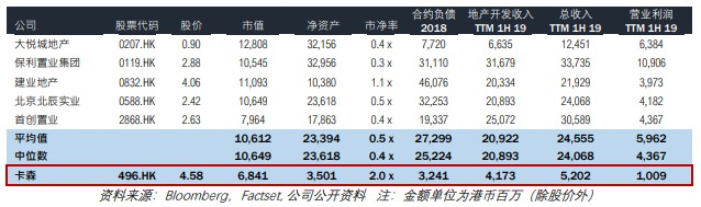 因此我们认为在对卡森估值时,应当从净资产中减去三亚项目剩余的6.03亿元人民币土地预付款,柬埔寨1.77亿元土地预付款及6.96亿元虚报的资本支出,然后再以香港上市的可比地产公司的平均市净率来估值。
