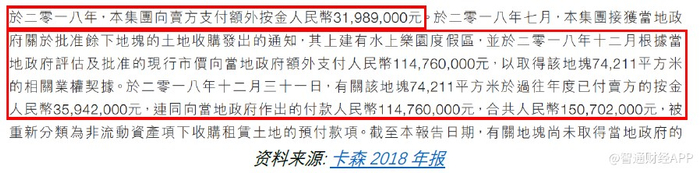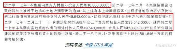 2018年,卡森宣称收到另外74,211平方米土地的批准,但是公司必须额外支付1.148亿元人民币来获得产权证明。