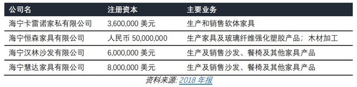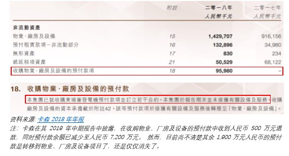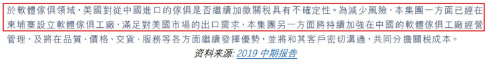 同样的套路到这还没完。卡森在 2019 年中期报告披露其制造部门产生了 1.69 亿元人民币的资本支出。但我们在其 2019 年中期报告中唯一找到的相关披露是,卡森声称已经在柬埔寨设立了软体家具工厂。