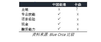 中冶集团拥有现金、经验和专业技能来开发该项目。相较之下,卡森几乎没有现金,也没有成功完成过在规模、范围和复杂性上能望其项背的任一过往项目记录。与中冶集团相比,卡森只能为该项目提供非常微小的价值。