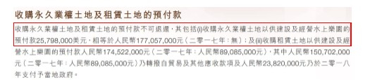 根据公告披露的合同内容,卡森仅需要为该土地预付5,600万元人民币(800万美元)。剩余50%的对价仅需要在交易完成也就是土地所有权转移时支付。但在之后年报中,公司却披露其为柬埔寨水上公园土地预付了1.77亿元人民币(2,600万美元),远远超过合同要求。