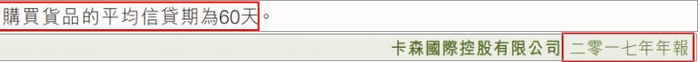 公司购买货品的平均信贷期在出售交易前后年份都保持60天。因此,我们不认为公司信贷政策有任何变化会对应付款余额造成影响。