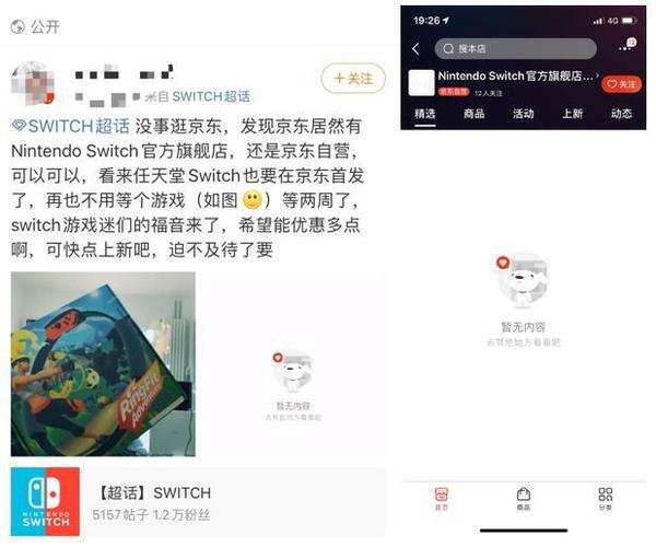 有网友发微博称,在京东上逛的时候,发现京东上线了Nintendo Switch官方旗舰店,但是店铺里还没有上线任何产品。Nintendo Switch是任天堂游戏公司于2017年3月首发的旗舰产品,位列《时代》2017年十大数码产品的榜首,被众多游戏玩家追捧。这样一款备受欢迎的游戏机,之前一直没有国行版,很多游戏玩家不得不通过海外代购的方式购买,基础体验感受存在一定欠缺。