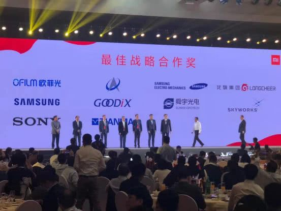资料显示,欧菲光(指纹、摄像头模组供应商)、汇顶科技(指纹芯片供应商)、三星电子(存储芯片供应商)、龙旗(ODM供应商)、舜宇光电(摄像头模组供应商)、Skyworks(射频前端供应商)、索尼(CIS供应商)、天马(显示屏供应商)等企业获得小米最佳战略合作奖!