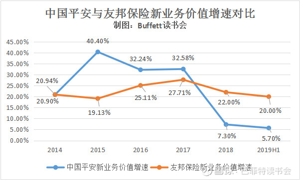 看图:平安在新业务价值的增速和友邦保险整整差了一大截。