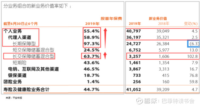 首先寿险一直是平安的核心业务,利润占集团的6成左右,2019年中报的数据显示寿险业务归属母公司股东利润占比进一步提升到72%。而且寿险的业务特征也决定了其在集团的基础地位。看平安的投资价值必须要寿险业务。