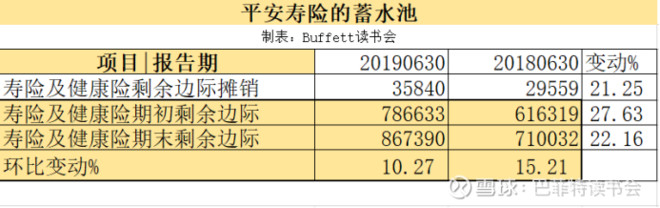 剩余边际源于会计上不能确认为盈利的“首日利得”,是保险公司存量业务在业务结束后可以实现的利润折现值,长期业务的剩余边际每年会以相对固定的比例释放即期利润,保证了寿险公司每年净利润的一定增速。这是平安的一个巨大的利润蓄水池。通过下表我们可以看到,公司每年放进来的多20%以上,而拿出来少10-15%。