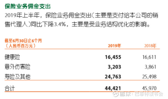在平安的财报中我们看到2019年上半年,平安保险业务佣金支出(主要是支付给本公司的销售代理人)同比下降3.4%,公司解释说主要是受业务结构优化的影响。